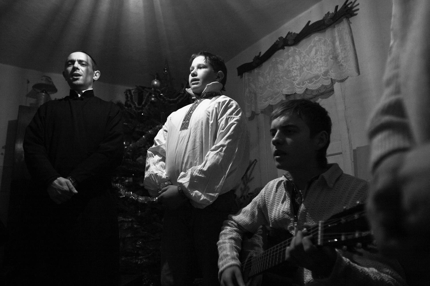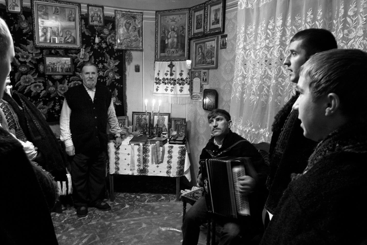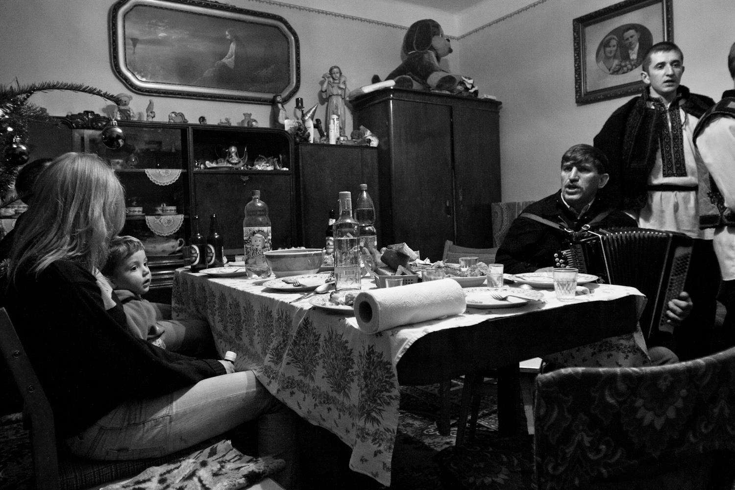 В городе Рахов (Закарпатье) колядки сохраняют древнюю силу и красоту. В морозные рождественские дни 2007 и 2008 года мужчины и мальчики в традиционных одеждах обходили дома с песнями, звонкими трещотками и факелами. Их пение звучало как живое продолжение старинного обряда, где прошлое и настоящее соединяются в едином хоре — гимне свету, рождению и надежде.